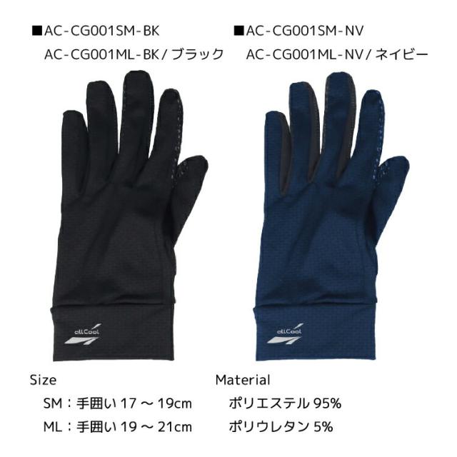 オールクール グローブ ALL COOL AC-CG001SM 全2色AC-CG001ML 全2色 冷感特殊素材 風にあてると冷たく感じる ユニセックス メンズ レディース