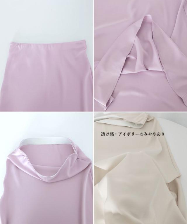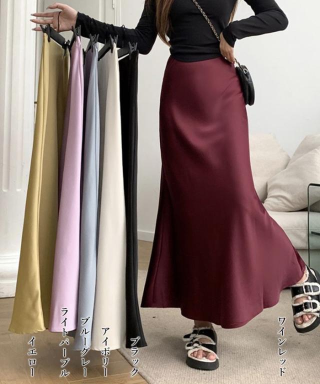 滑らかな光沢素材で高貴な印象を与えてくれるサテンスカート