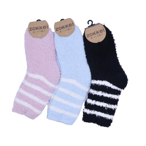 【送料無料】 もこもこ_細ボーダー (クルー18cm丈) (ピンク・ブルー・ブラック) (23-25cm) (3足セット) / みっとめるへん社