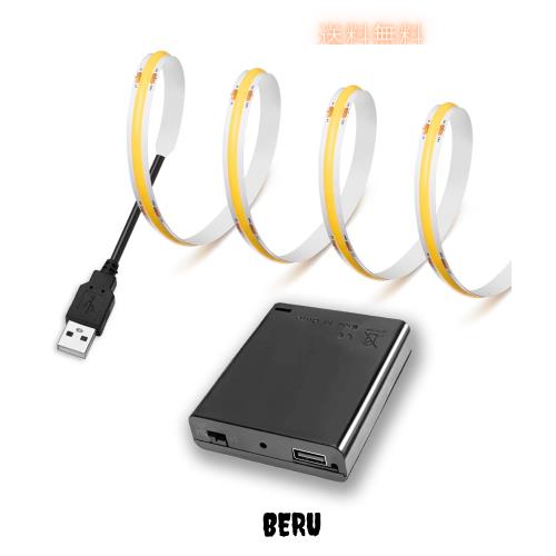 【Rye】 LEDストリップライト電池ボックス付き DC5V COBテープライトスーツフレキシブル 高密度 LEDキャビネットライト 0.5m 320LEDs/m