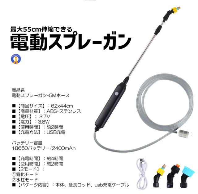 電動スプレーガン 延長ホース5m付 高圧 洗浄ホース 蛇口不要 先端ノズル 2種付属 超強力 噴射 洗浄 大掃除 洗車 水撒き 洗車 水やり ガーデニング 庭 散水 霧拭き 水撒き 植物 花 畑 WATERGUN