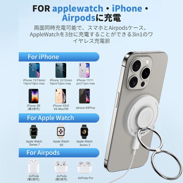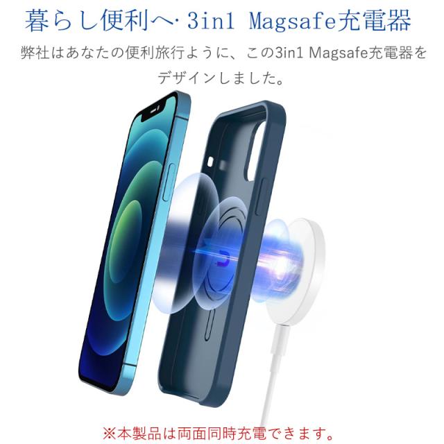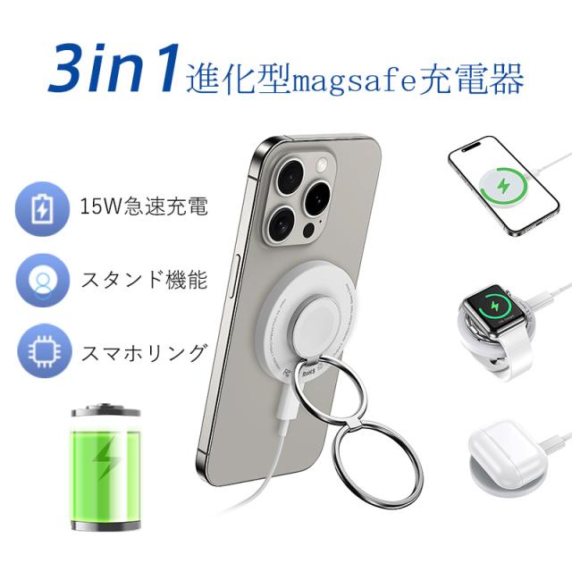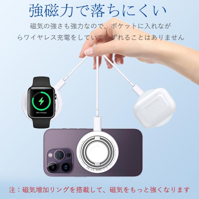 ワイヤレス充電器 MagSafe充電器 apple watch 充電器 3in1 マグネット式 メタルリング付き スマホスタンド