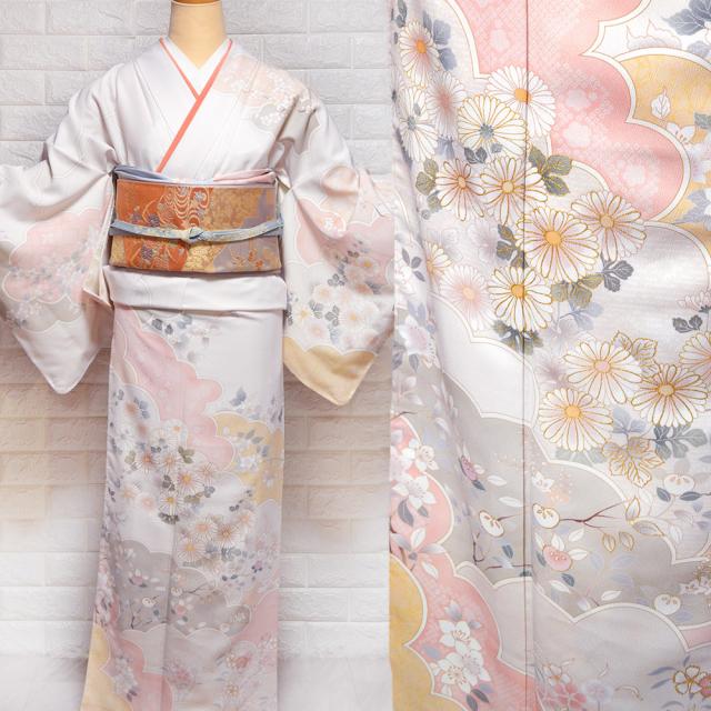 白地を基調に、淡いピンクや黄色、グレーの雲取りは
