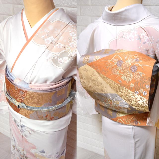 着物・袋帯・長襦袢・半衿・帯締・帯揚・草履・バッグ・腰紐4本・伊達締め2本・帯板・帯枕・衿芯・着物ベルト・足袋