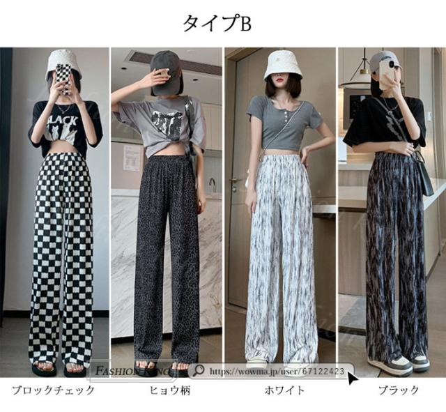 <1点あたり1,238円!2点購入&45%OFFクーポン利用で> ワイドパンツ 夏 パンツ リブ 秋冬 春新作 パンツ 薄手 レディース ボトムス イージーパンツ 冷感 ひんやり きれいめ カジュアル ゆったり フラッグチェック バイカラー 配色 ウエストゴム