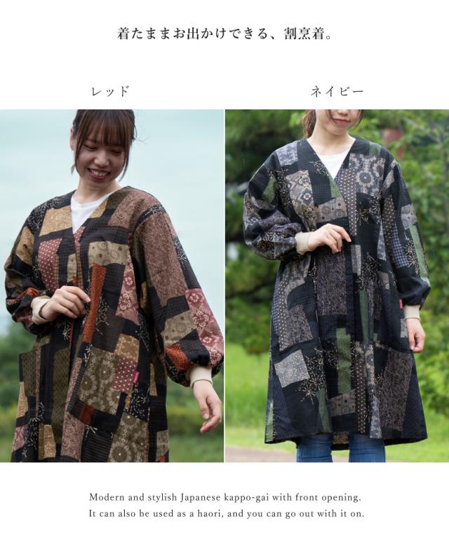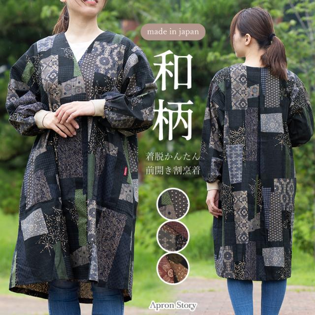 【メール便1枚のみ送料無料】和柄前開き割烹着 レディース 日本製 和柄 割烹着 かっぽう着 おしゃれ かっぽうぎ 60代 70代 80代 ギフト 贈り物 母の日【P】【M】