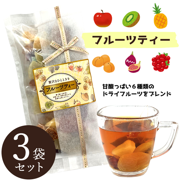 フルーツティー 4包入 3袋セット (メール便送料無料) ドライフルーツ フルーツティー 紅茶 ティーバッグ 食べる 果肉 イチジク アプリコット クランベリー アップル キウイ パイン ホット アイス リラックス