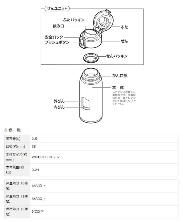 | AKT-50(W) ワンタッチマグボトル 500ml ホワイト スペック情報 | |