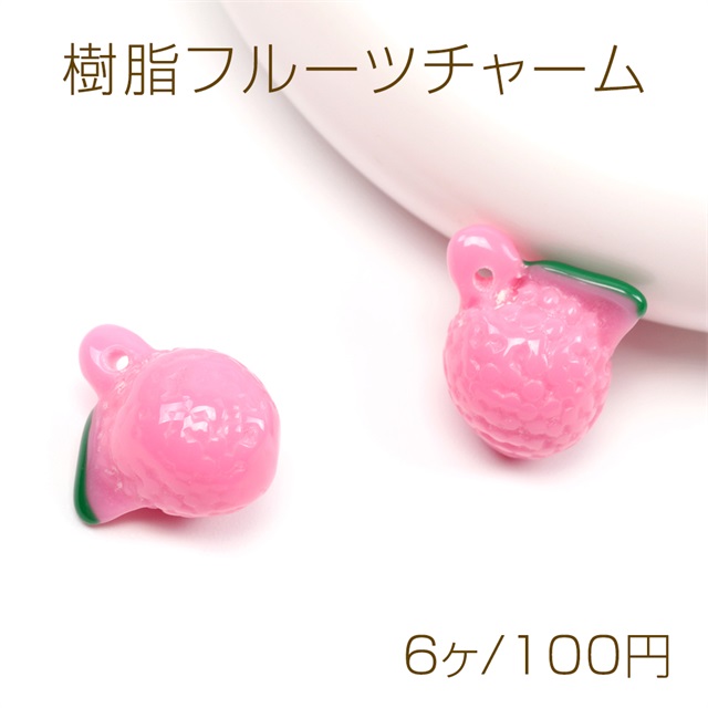 樹脂フルーツチャーム ミニチュア果物チャーム 食品サンプルチャーム ライチモチーフ 樹脂製 約11×12mm(6ヶ)