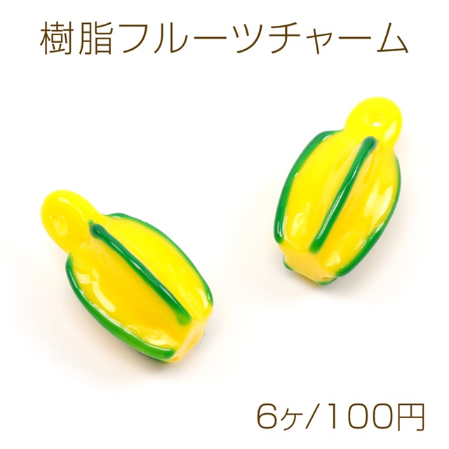樹脂フルーツチャーム ミニチュア果物チャーム 食品サンプルチャーム スターフルーツモチーフ 樹脂製 約8×15mm(6ヶ)
