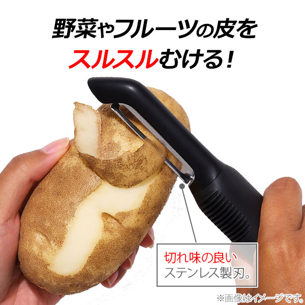 シャープでよく切れるステンレススチールの刃で、さまざまなフルーツや野菜の皮をスルスルとむくことができます。