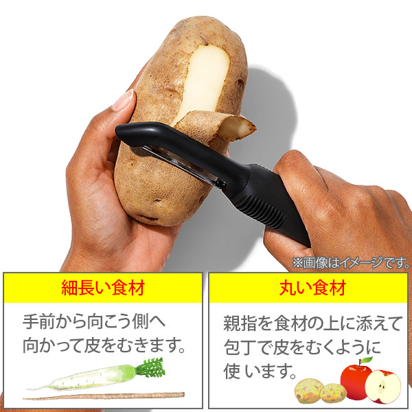特に、ごぼう等の細長い食材の皮むきやリンゴやジャガイモなど、丸い形の食材に最適です。