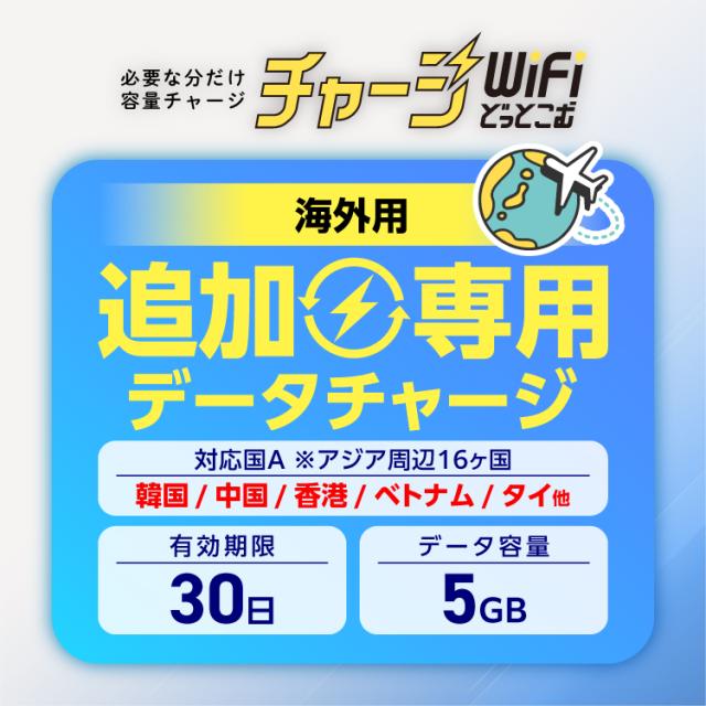 ポケットwifi 海外専用 追加データチャージ アジア周遊 韓国 台湾 中国 ベトナム タイ 16ヵ国対応 5GB