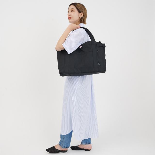 シンプルでさらっと軽い素材ですが、適度なハリがあり、きちんと感もあるデザインなのでシーズンレスでお使いいただけます。軽くて大容量なので通勤・通学はもちろん、旅行用やマザーズバッグとしてもオススメです。内側には余計な仕切りなどがなく、ガンガン入れられるところが便利。