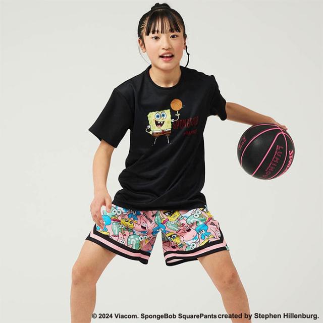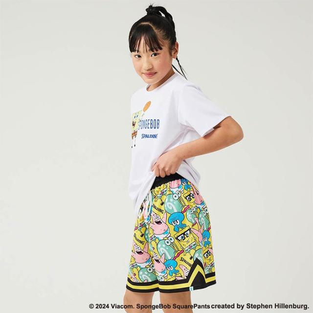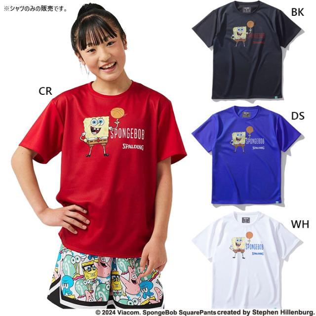 スポルディング ジュニア キッズ スポンジボブ スピニング バスケットボール バスケットボールウェア トップス 半袖Tシャツ ホワイト 白 ブラック 黒 ブルー レッド 青 赤 送料無料 SPALDING SJT24171S