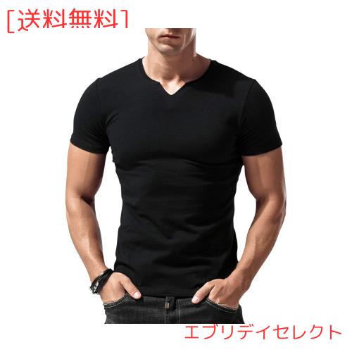 [スリム アライブ] メンズスリムフィット長袖半袖ヘンリーTシャツカジュアルVネックアンダーシャツコットン T2307 ブラック S