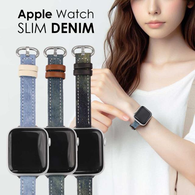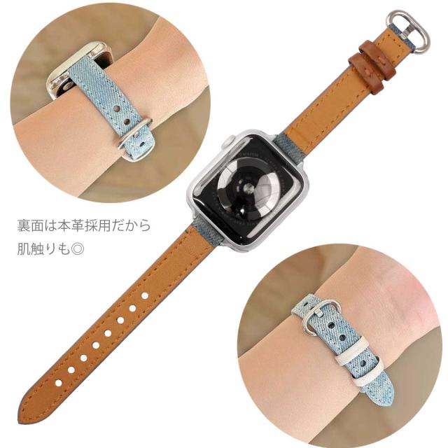 アップルウォッチ バンド デニム スリム ベルト apple watch デニム × 本革 女性向け レディース かわいい デザイン カジュアル ブランド IDEAL おしゃれ ビジネス 取替 アップルウォッチバンド 腕時計 40mm 41mm 44mm 45mm 9 8 7 6 5 4 SE