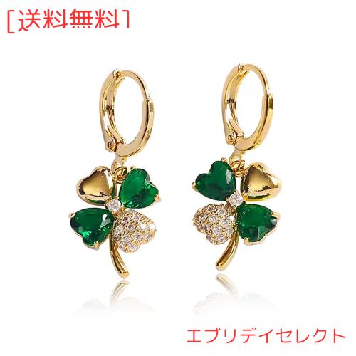 MOUP2023 緑四つ葉のクローバーリングピアス レディース 人気 金属アレルギー対応ジルコニアアクセサリー揺れるイヤリング…