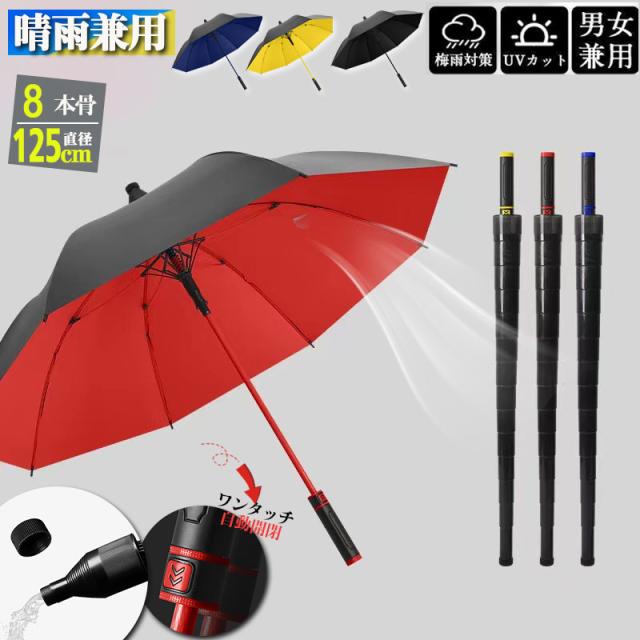 日傘 長傘 メンズ 男性用 紳士用 長柄 おしゃれ ワンタッチ ビジネス 雨傘 傘 ワンタッチ 梅雨対策 耐風 撥水 8本骨 折れにくい 持ちやすい
