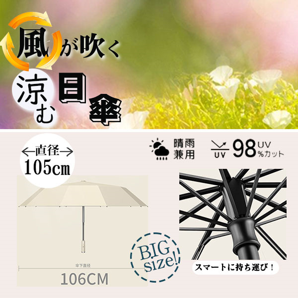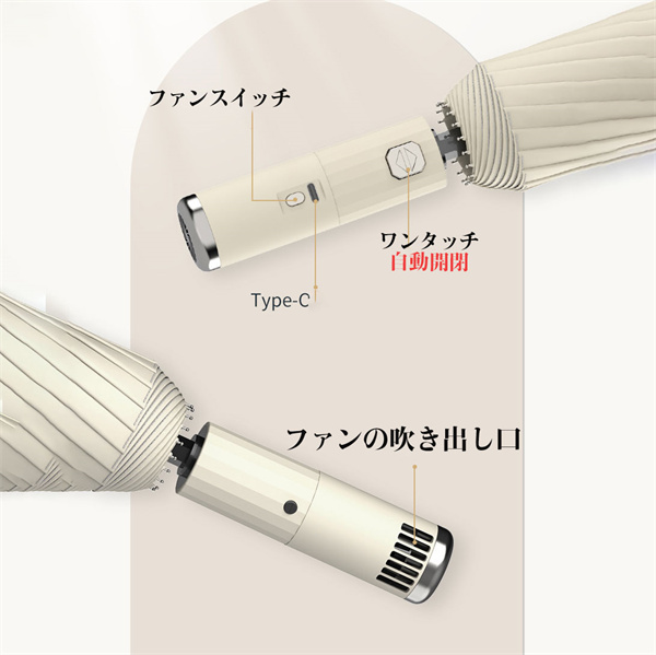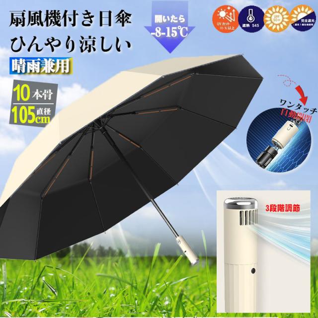 日傘 ワンタッチ折りたたみ傘 ハンディファン 3段階調節 婦人用 ワンタッチ 自動開閉 10本骨 完全遮光 UVカット軽量 撥水 晴雨兼用 涼しい