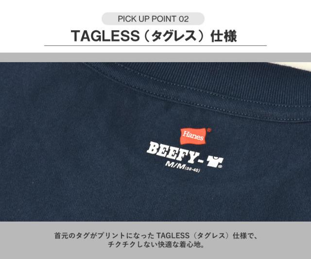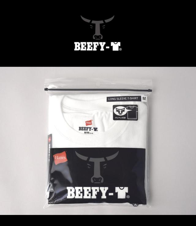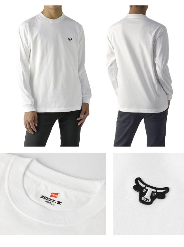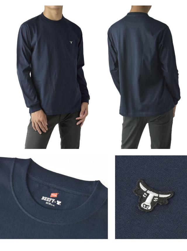 Tシャツ 長袖 BEEFY-T ビーフィーT Hanes ヘインズ クルーネック ワンポイント ヘビーオンス メンズ ワッペン ロングスリーブ コットン100% タフ 頑丈 TAGLESS 袖リブ H8-X401 正規品【H1B】【パケ1】