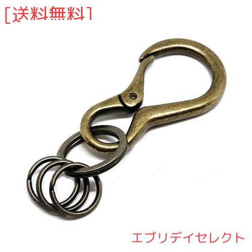 [BRASS STORE] アンティーク二重リング付き カラビナ キーホルダー (ブロンズ大) キーリング メンズ レディース アンティーク ゴールド