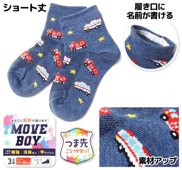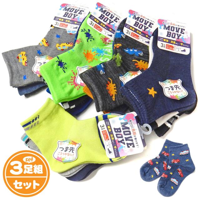 【送料無料】3足組セット 男児 キッズ ショート丈 ソックス 靴下 つま先かかと補強 消臭 履き口に名前が書ける 甲メッシュ 子供 男の子 15-20cm yg-2533【メール便対応】