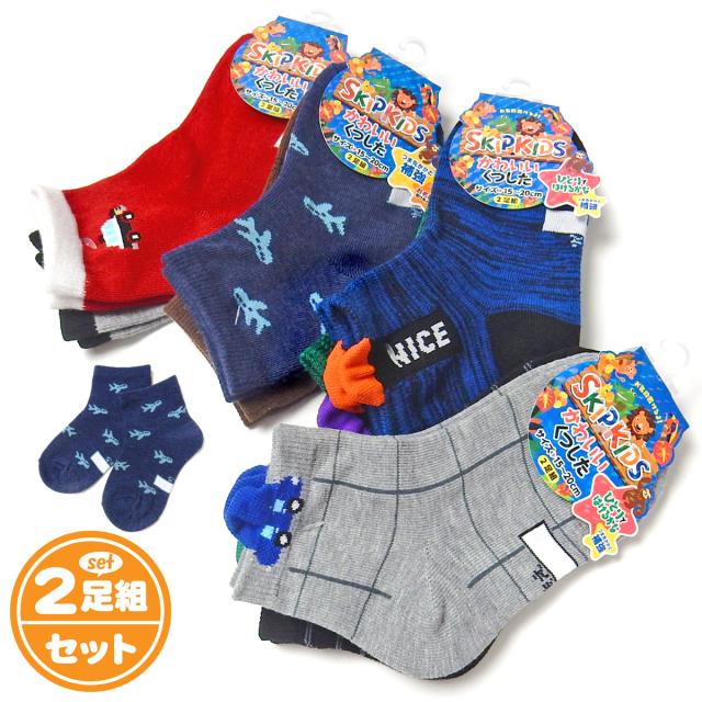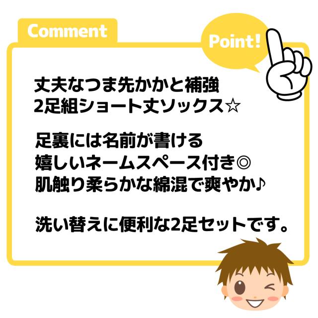 【送料無料】2足組セット 男児 キッズ ショート丈 ソックス 靴下 つま先かかと補強 名前が書ける 綿混 子供 男の子 15-20cm yg-2537【メール便対応】