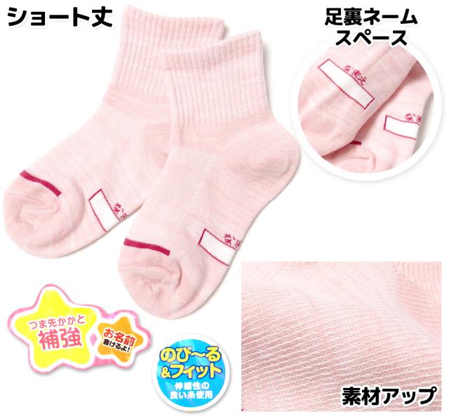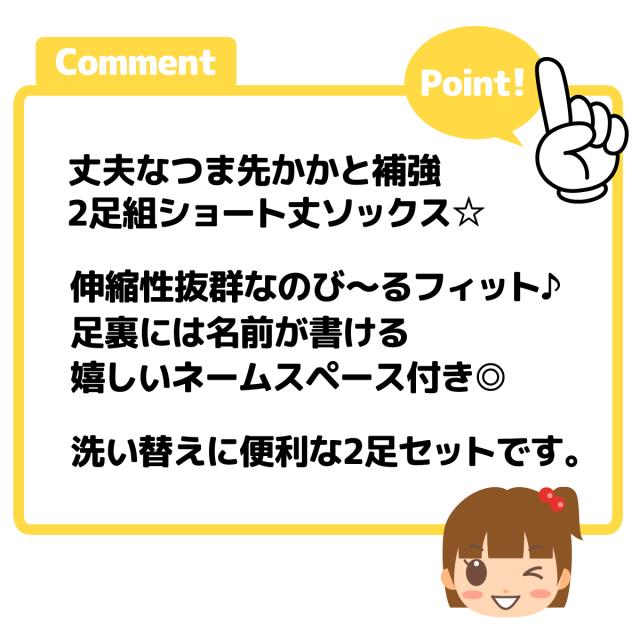【送料無料】2足組セット 女児 キッズ ショート丈 ソックス 靴下 つま先かかと補強 名前が書ける 伸縮性 子供 女の子 15-20cm yg-2535【メール便対応】