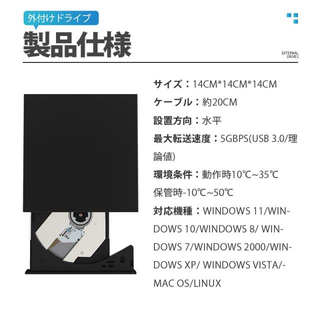 DVDドライブ 外付け Windows11 対応 USB3.0 usb Mac パソコン ポータブルドライブ 書き込み 読取り CDドライブ DVD-RW CD DVD RW CD-RW OS XP Vista