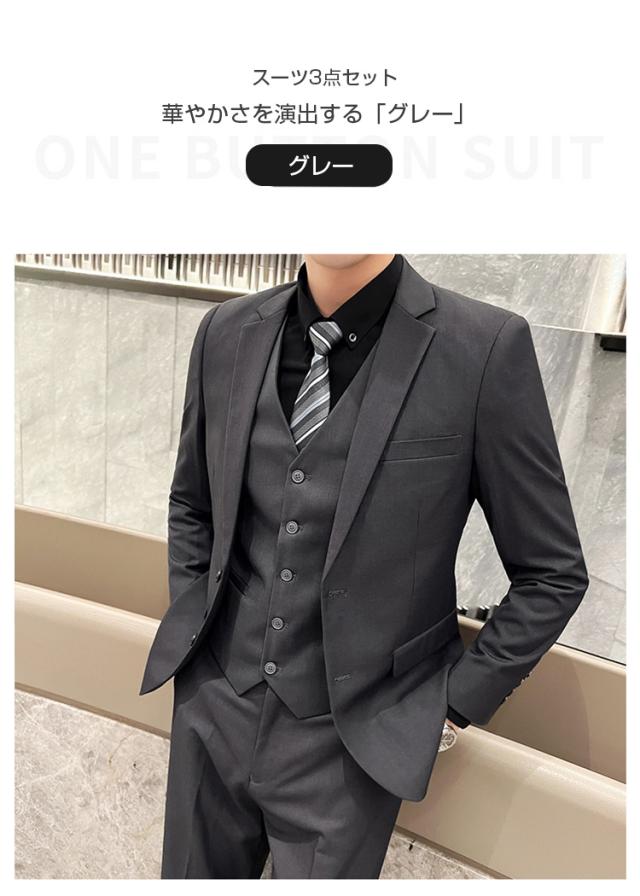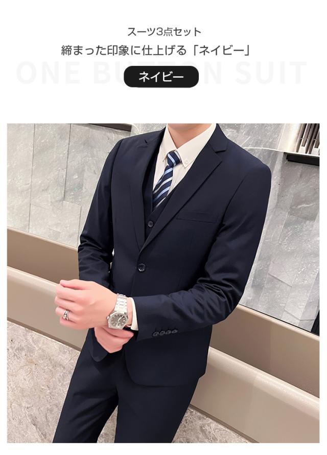3ピーススーツ メンズ スリーピーススーツ スーツ 2つボタン スリム ビジネススーツ通勤 スーツセットアップ 洗える リクルート 結婚式 卒業式 春 夏 秋 冬