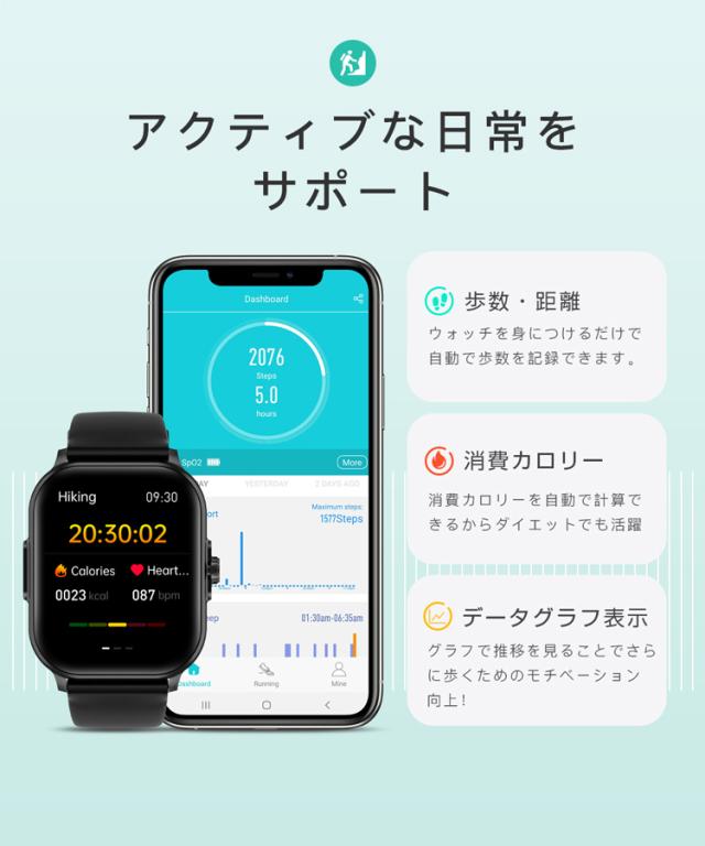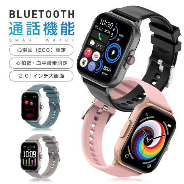 スマートウォッチ 通話可能 心拍数 日本製センサー 血中酸素 日本語 iphone android 2.01インチ大画面 歩数計 健康管理 2024