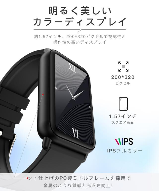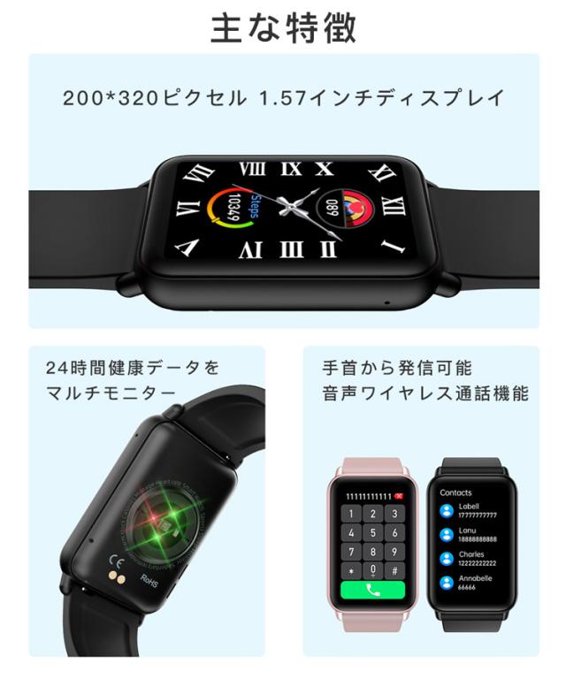 スマートウォッチ 通話機能 心拍数 日本製センサー 日本語 iphone android 1.57インチ 歩数計 着信通知 健康管理 睡眠検測