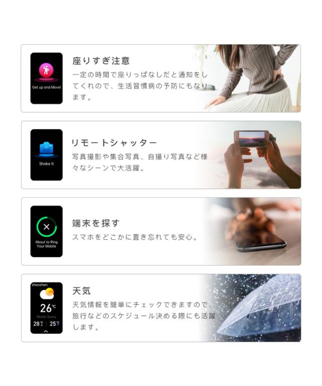 ●一定時間毎に心拍数、、血圧、血中酸素を自動的にモニターし、健康的なライフスタイルを維持することをサポートします。
