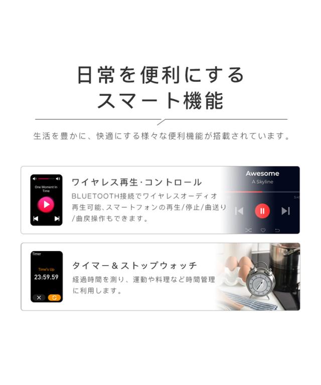 音楽コントロール、買い物リストの作成、タイマーの設定など、話しかけるだけで使用可能。