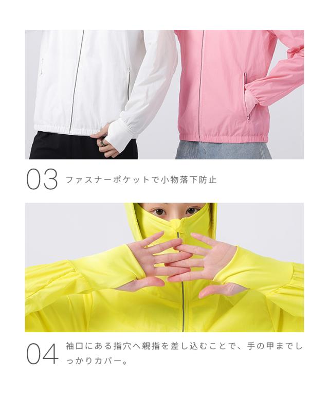 ・ジッパーを上まであげると、口元までしっかり覆うことができるので、顔をしっかりと紫外線からガード。