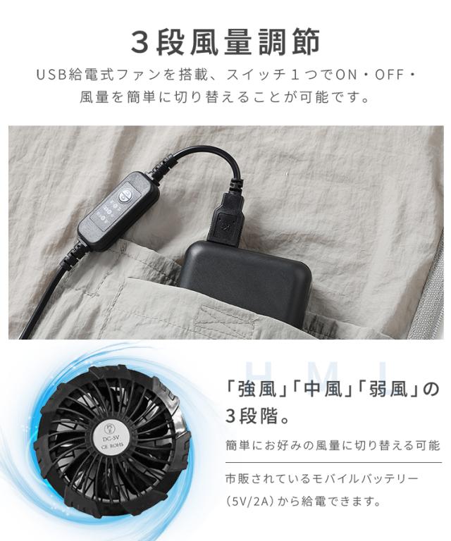 USB給電式ファンを搭載、スイッチ1つでON・OFF・風量を簡単に切り替えることが可能です。