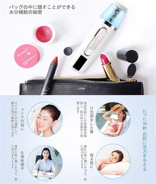◆ナノ微粒化技術、スゴイ補水効果!噴霧用タブレット、深く浸透と深い保湿をアップグレード!ナノ微粒化技術を採用して肌にうるおい補給で肌を活性化、リラックスさせます。微粒水分子はお肌の奥まで潤いが浸透し、乾燥肌や毛穴詰まりなどの肌のトラブルを改善できます。