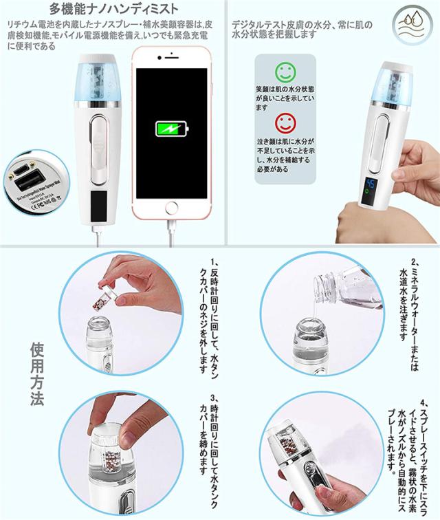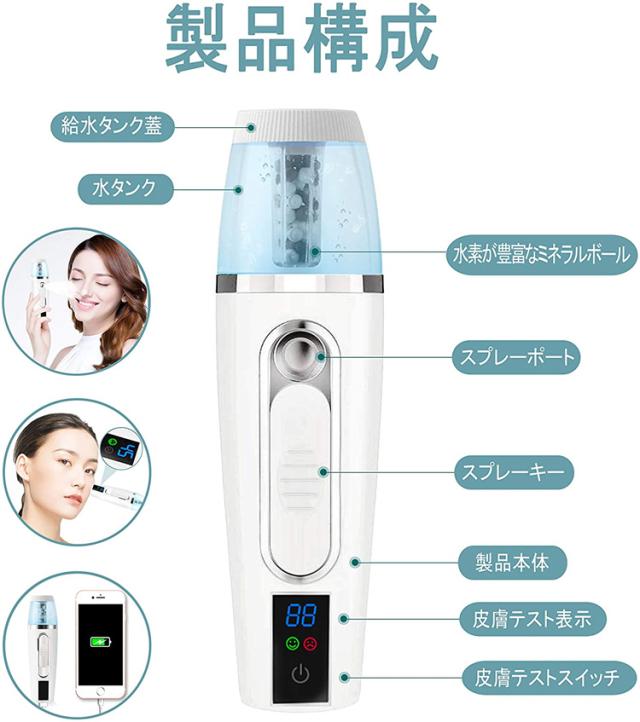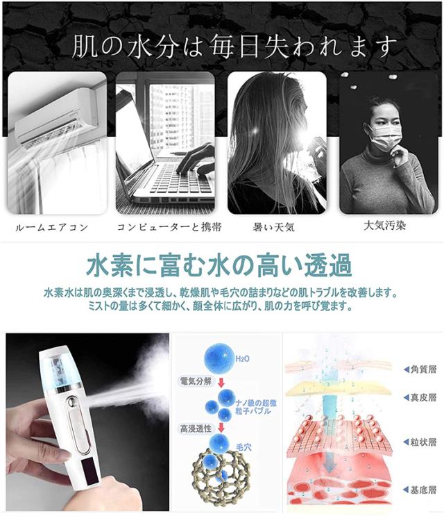 水素ミスト 美顔器 肌乾燥対策 全肌質対応 ハンディミスト スキンケアチェッカー 充電式 スチーマー 水素水スプレー 白美顔器美肌ケア