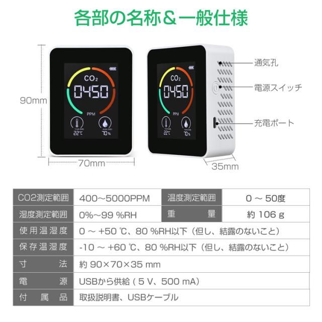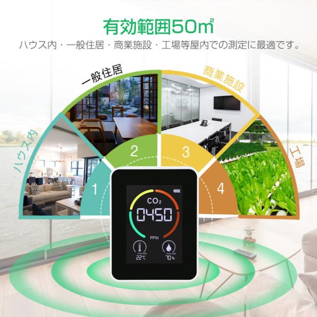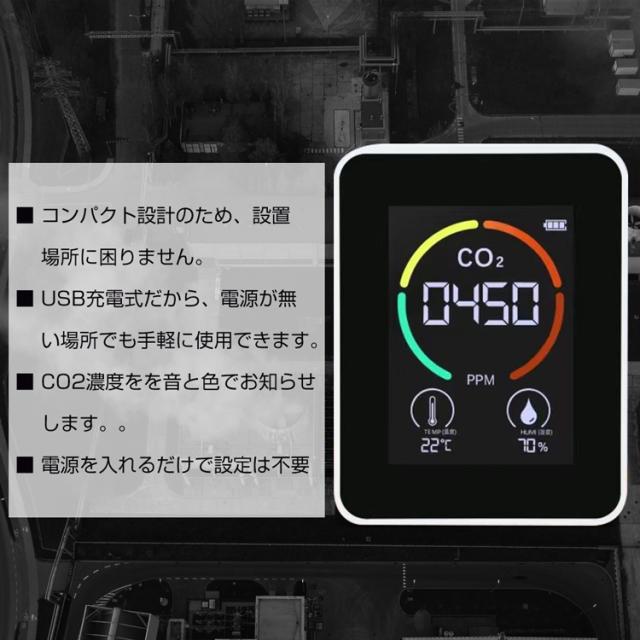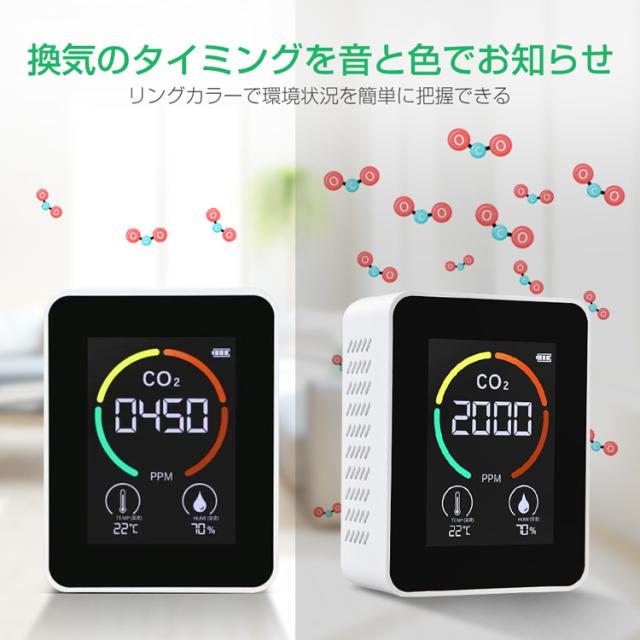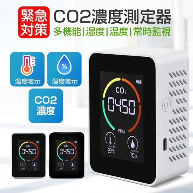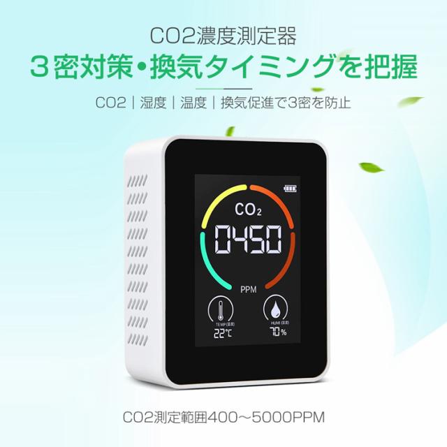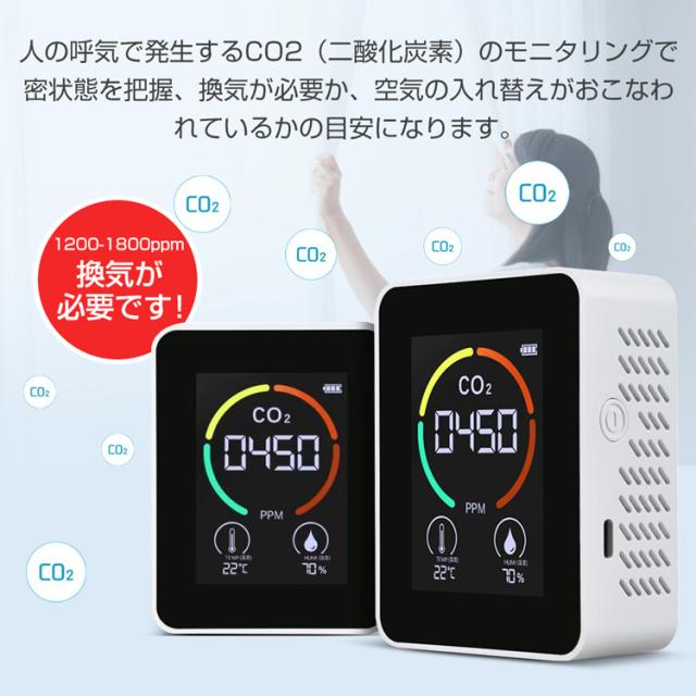 二酸化炭素濃度計 CO2空気汚染測定器 CO2センサー CO2マネージャー co2濃度計 二酸化炭素計測器 空気質検知器 温度 湿度 濃度測定 高精度 換気 濃度測定 卓上型
