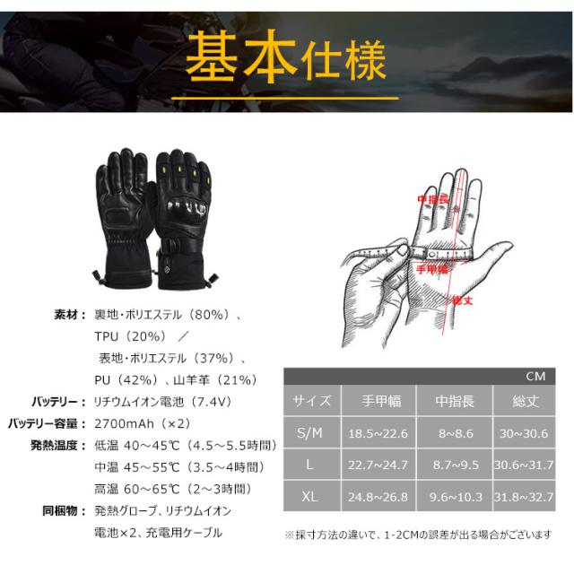 同梱物:発熱グローブ、リチウムイオン電池×2、充電用ケーブル