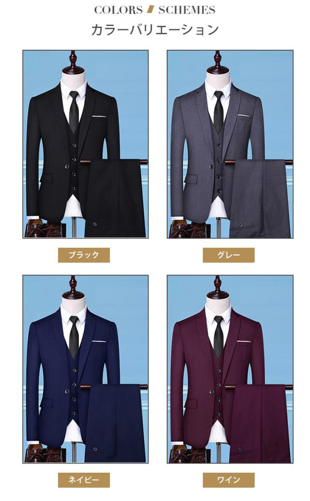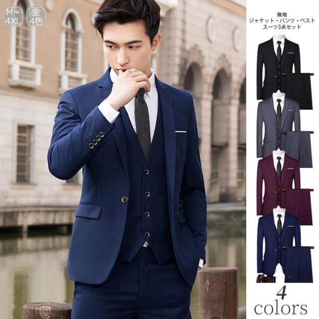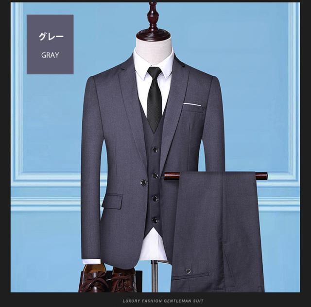 スーツメンズ おしゃれ ビジネススーツ カジュアルスーツ 3ピーススーツ フォーマルスーツ スーツセットアップ 3点セット 洗える スリム リクルート 通勤