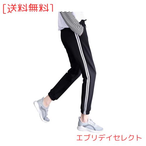 [Muxuryee] ジャージ レディース 下 サイドライン ジョガーパンツ スポーツウェア レディース スウェット カジュアル 046BK M
