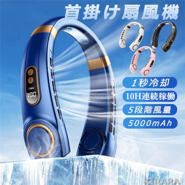 ネッククーラー 首掛け扇風機 最強 5000mAh 大容量 5段階風量 冷却プレート付 静音 軽量 最大10時間動作 USB充電 360° 強力 子供 18℃ 首掛け 2025