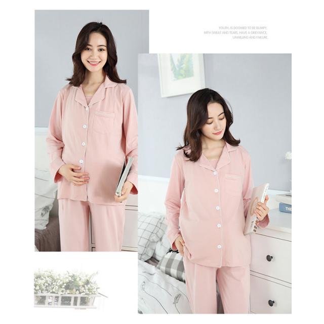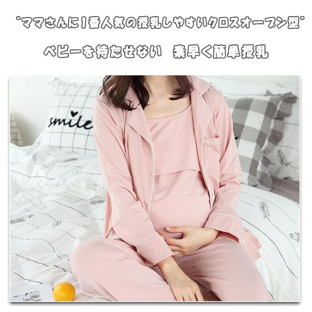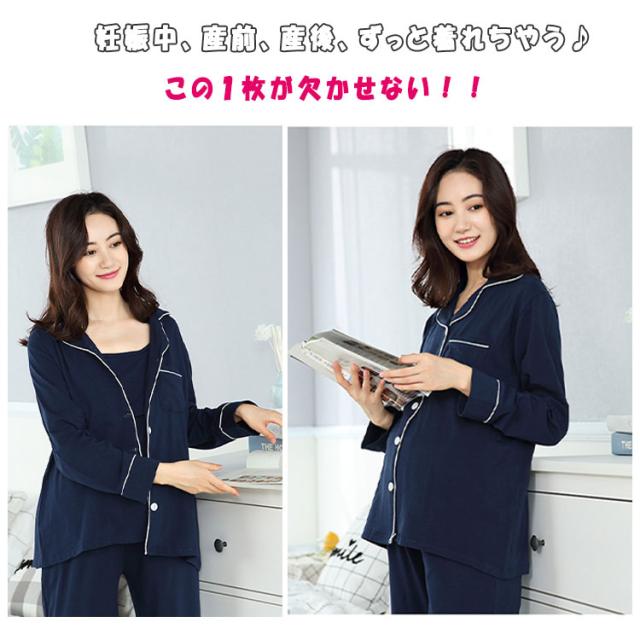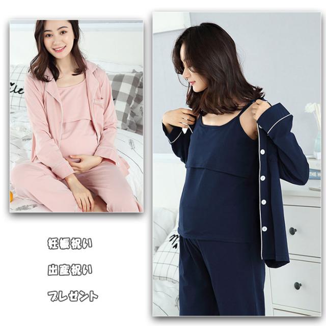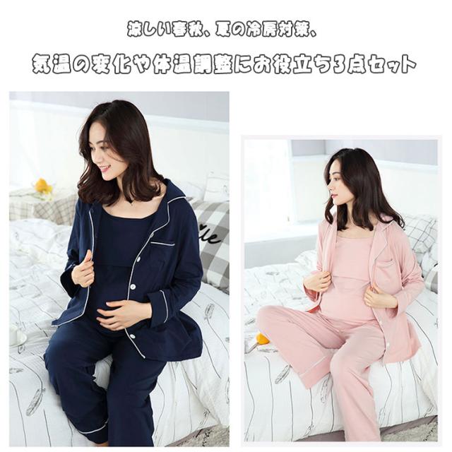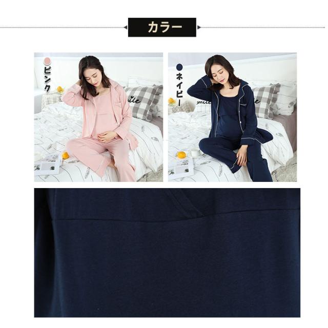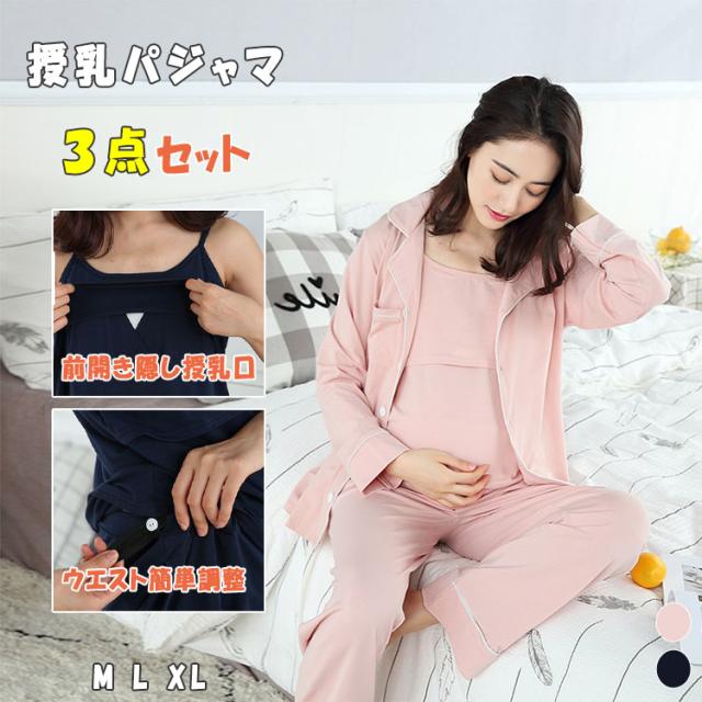 授乳服 マタニティ パジャマ 授乳パジャマ 3点セット 長袖 長ズボン キャミソール 授乳口付きキャミ カシュクール ボタン 前開き 春 秋 妊娠 入院準備 産前 出産期 産後 授乳期 長期に使える 妊婦パジャマ ルームウエア