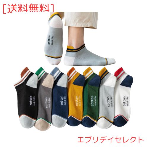 [Tersila] 靴下 メンズ 春夏 くるぶしソックス スポーツソックス カラフルソックス 室内 7足セット抗菌 中厚手 畳24-28cm