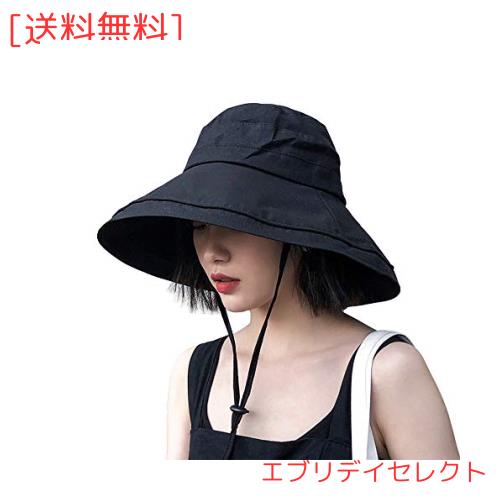 UVカット帽子 つば広 小顔効果 マジックテープ調節 あご紐 風で飛ばない 紫外線カット レディースハット 折りたたみ 携帯便利 アウトドア