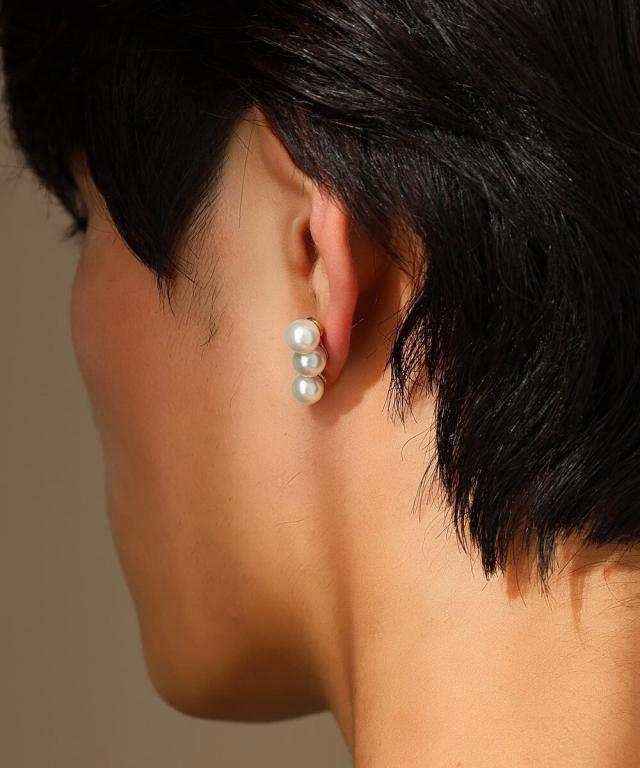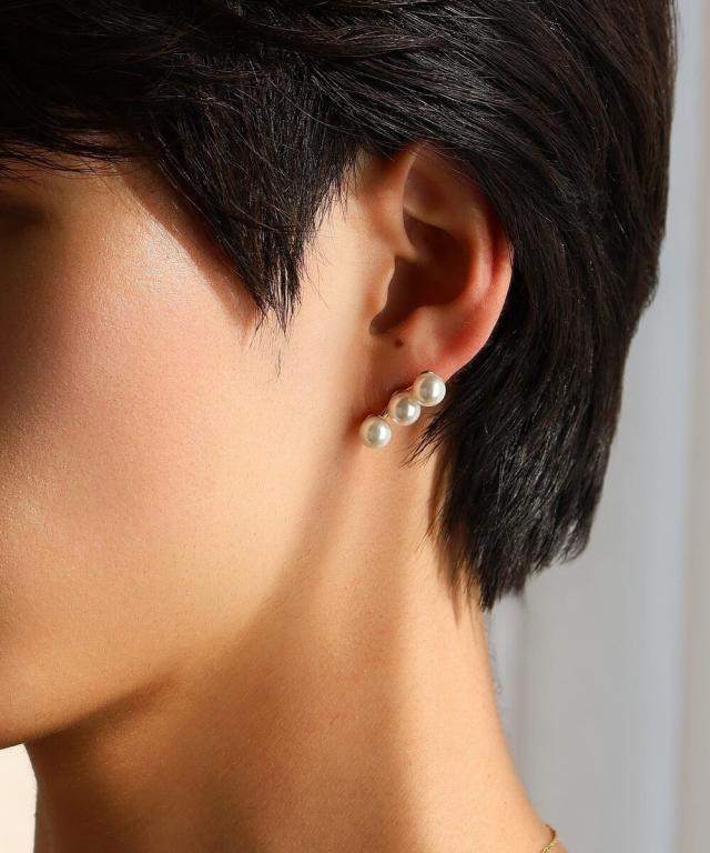 【“MELLOW”ラインパールピアス/3粒】