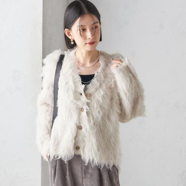 〈手洗い可能〉シャギー ファー カーディガン