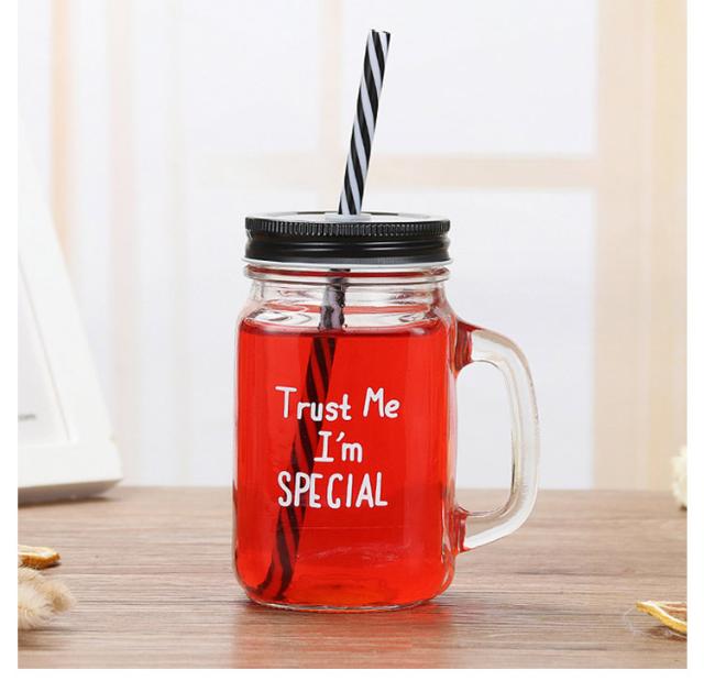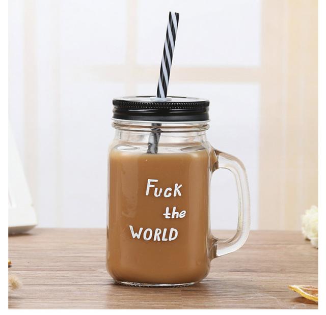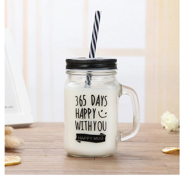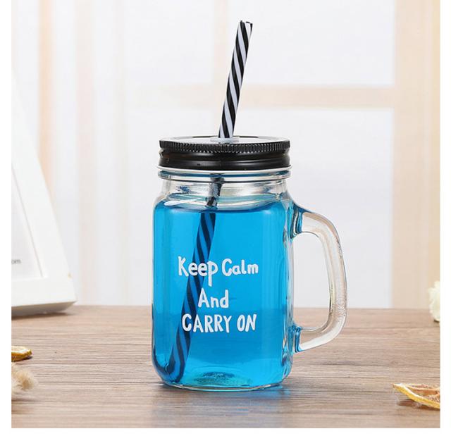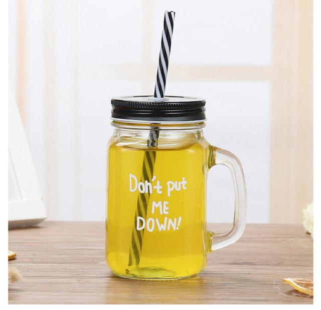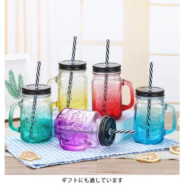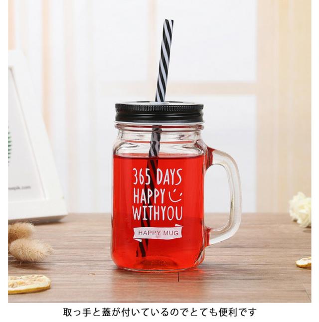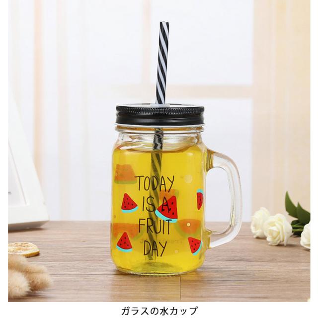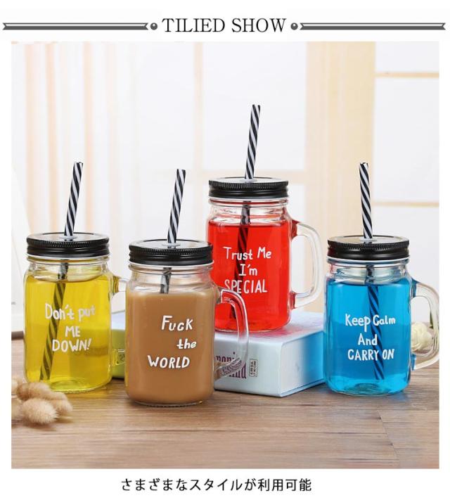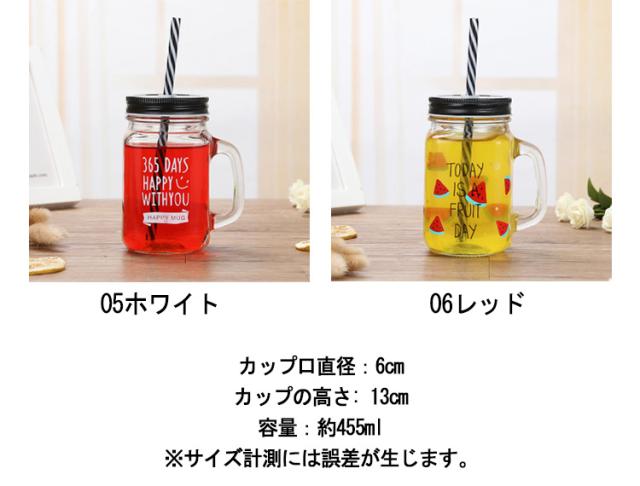 | ガラス製 ドリンクジャー 455ml ストロー付き ガラスの水カップ 取っ手と蓋が付いているのでとても便利です さまざまなスタイルが利用可能 ギフトにも適しています | |